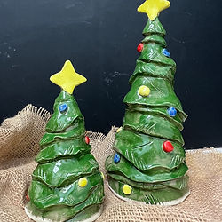Join Robin McGuirt ,as she leads you in making one, maybe 2 Christmas Trees from a slab of clay!! You will cut strips of clay from your slab, twist and join the clay together, add textures and fun baubles to make your very own Christmas Tree(s)!! No prior clay experience needed and all supplies, tools, clay, glazes and firing provided. This is a 2 part class, the first class will be held on Saturday, November 15th from 10am-12pm and will involve making the tree shape(s), adding textures and any embellishments you choose to make (ornaments, stars, lights, etc.) and then leaving it at the studio for bisque firing. You will return in a week, on Saturday, November 22nd the same time to glaze your tree(s). It will be fired once more and then ready for pick up 2 weeks later! For ages 14 and up. There are 2 options if you would like to make Twisty Trees with your child (age 8 and up), 1) Register each of you separately and you will each receive your own slab that makes 1-2 Twisty Trees or 2) Register just yourself and your child can make the 1-2 Twisty Trees with you. Please note the name and age of your child on your registration for studio set up purposes. Instructor: Robin McGuirt Robin is an accomplished potter who lives in Harmony, NC with her husband, 2 dogs, sheep, chickens and bees. She works from her home studio, making primarily wheel thrown pieces. Robin has been making pottery for over 20 years and her favorite pieces to make are wine glasses and custom wedding and communion sets. She has shown her work at the Bascom in Highlands, NC, the Smart Gallery in W Jefferson and at GG's here in Statesville. Robin teaches Handbuilding and Wheel Throwing Classes at Create in addition to fun workshops throughout the year!